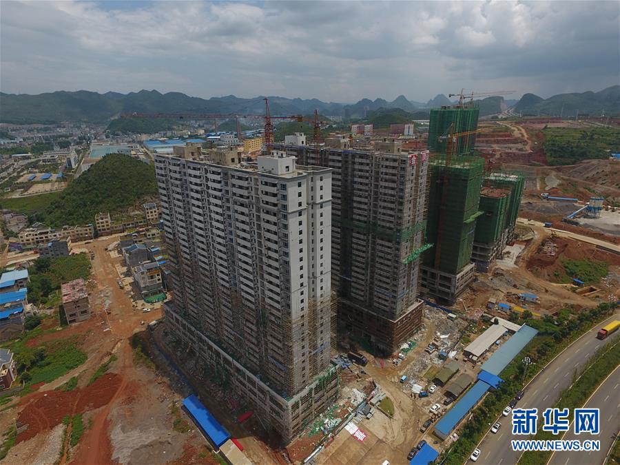 修建中的贵州省黔西南州义龙新区移民安置小区(2016年8月22日摄,无人机照片)。新华社记者 刘续 摄