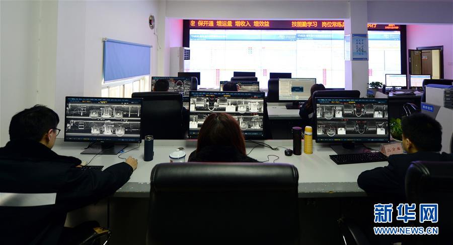 1月4日,长沙车辆段动态检车室的工作人员在查看列车状况。 2020年春运即将开始,中国铁路广州局集团有限公司长沙车辆段对列车开展安全大检查,确保春运期间安全运行。 新华社发(陈振海摄)