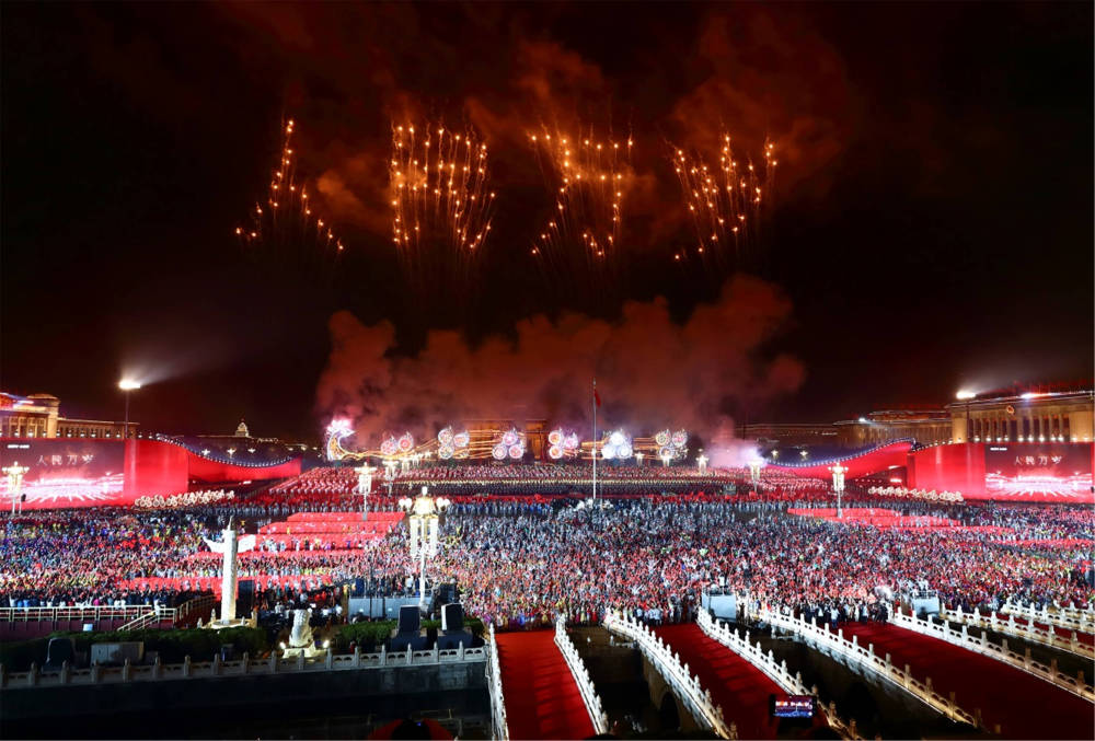 ↑2019年10月1日,庆祝中华人民共和国成立70周年联欢活动在北京天安门广场举行。新华社记者兰红光摄