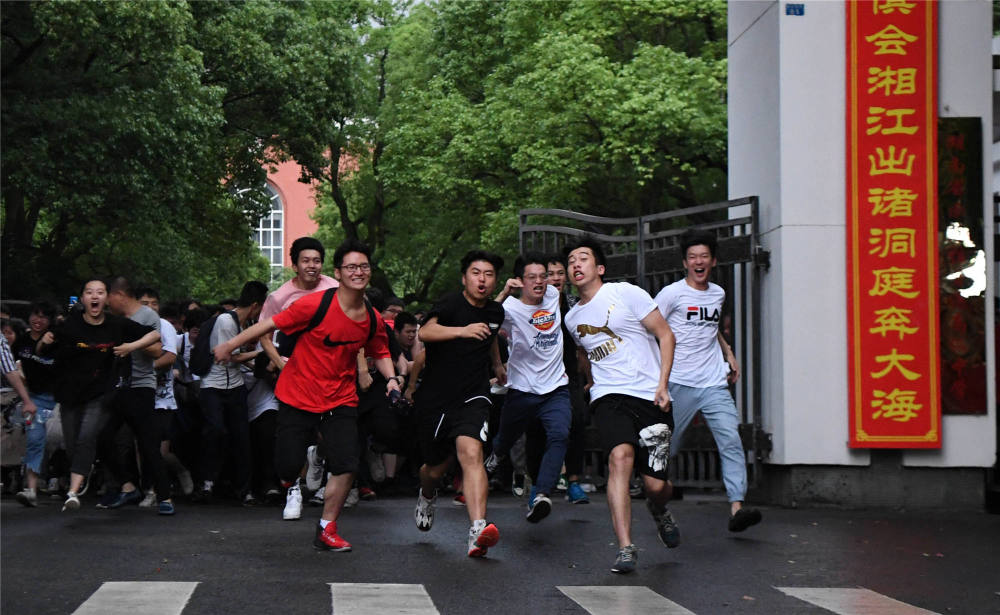 ↑2019年6月8日,高考结束后,考生冲出湖南省长沙市第一中学考点。新华社记者薛宇舸摄