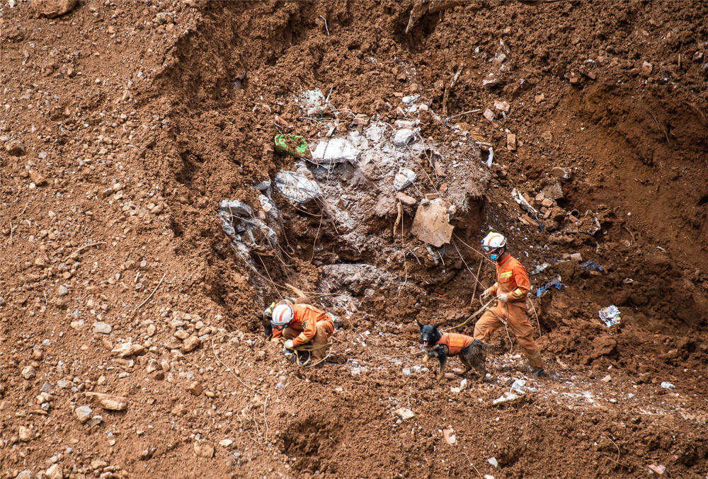 ↑2019年7月26日,救援人员在贵州省水城县“7·23”特大山体滑坡灾害现场进行搜救。新华社记者陶亮摄