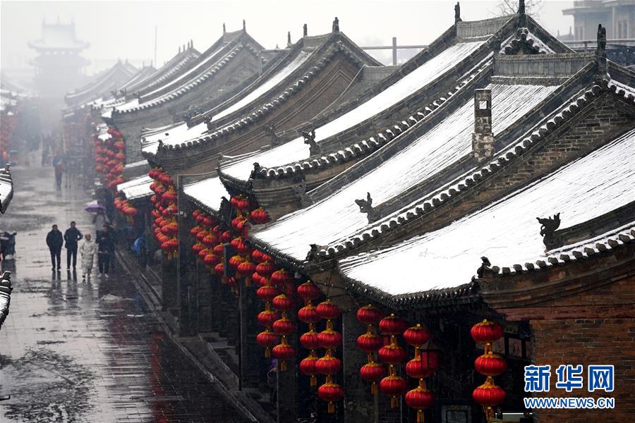 1月5日,游人在平遥古城街道上游览。新华社记者 詹彦 摄