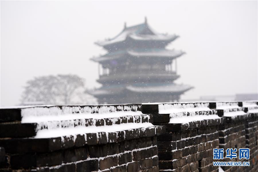 1月5日拍摄的平遥古城迎薰门城楼和城墙。新华社记者 詹彦 摄