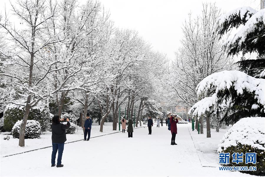 1月6日,市民在雪后的中国人民大学校园里拍照。 1月5日晚,北京迎来2020年首场降雪。雪后的京城银装素裹,分外美丽。 新华社发(任超 摄)
