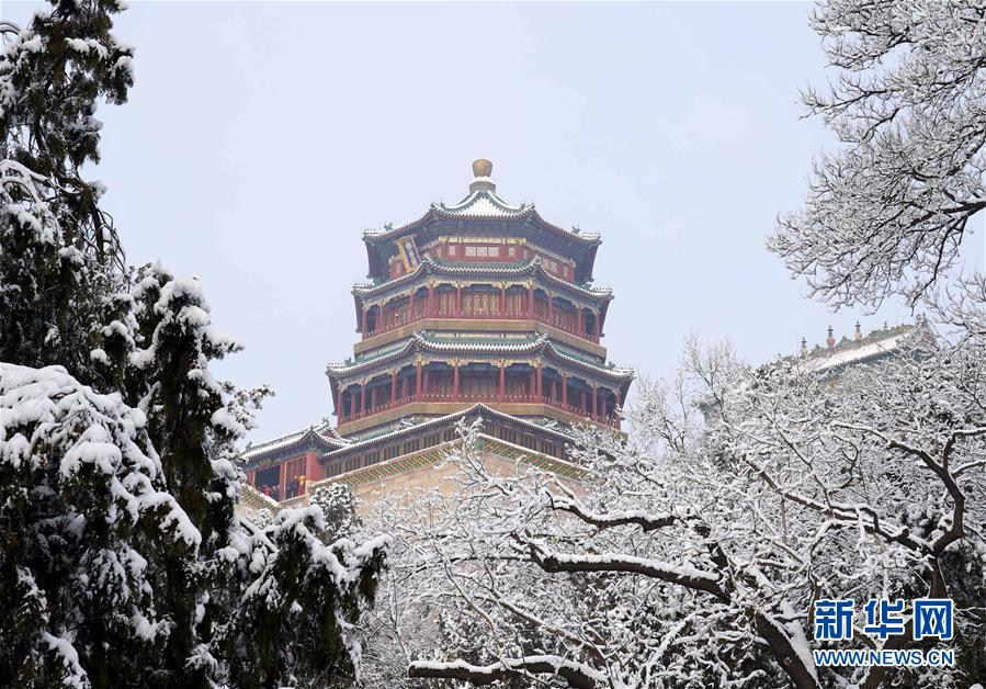 1月6日拍摄的颐和园佛香阁雪景。 1月5日晚,北京迎来2020年首场降雪。雪后的颐和园景色迷人,宛若画卷。 新华社记者 陈建力 摄