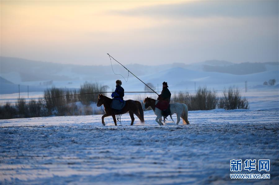 1月6日,演员在乌兰布统草原马文化摄影节上表演。 当日,第三届乌兰布统(坝上)草原马文化摄影节在内蒙古克什克腾旗乌兰布统草原开幕,骑马拾哈达、骑马表演、套马表演等具有民族风情的活动吸引众多游客和摄影爱好者前来观赏、拍摄。该摄影节是克什克腾第十三届冬季旅游节活动之一,将持续至1月8日。 新华社记者 徐钦 摄