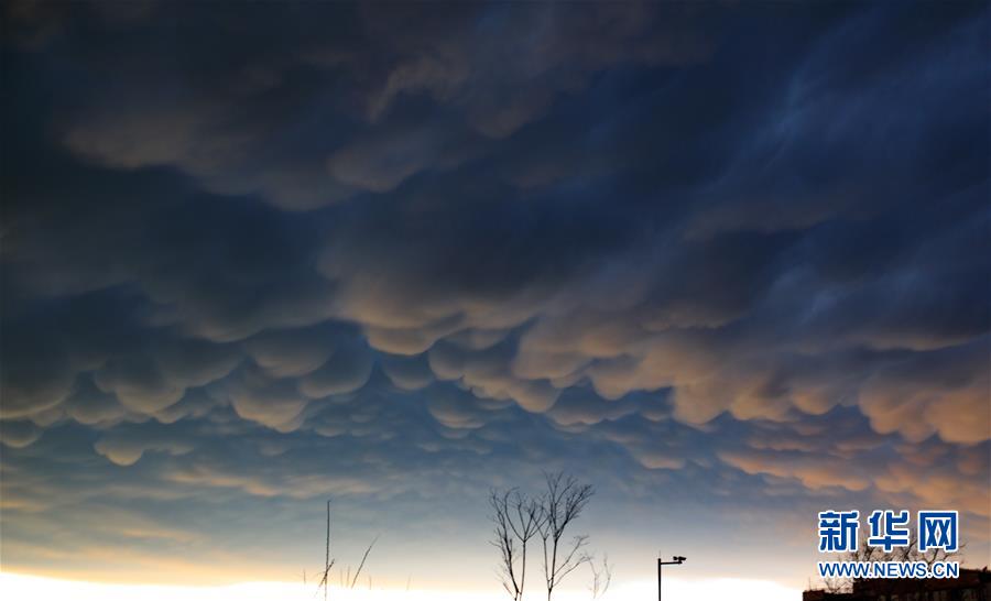 这是1月6日在贵阳上空出现的“乳状云”。 当日傍晚,贵阳上空出现“乳状云”。据了解,乳状云又称“乳状积云”,是指形状与牛乳房相似的云层。 新华社记者 刘续 摄