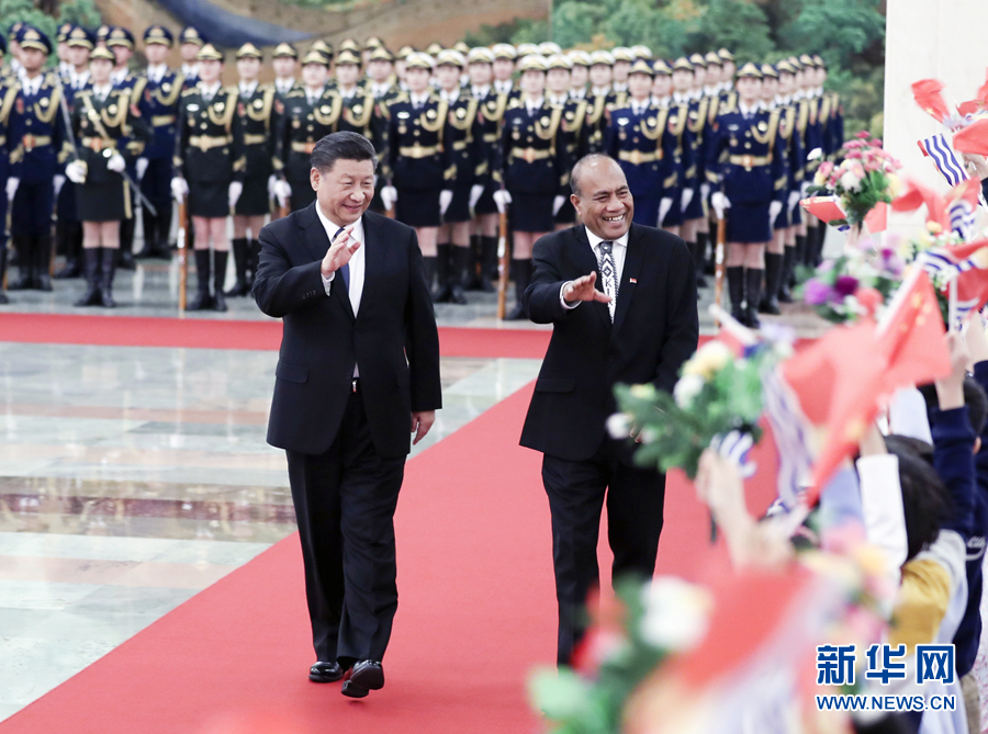 1月6日,国家主席习近平在北京人民大会堂同基里巴斯总统马茂会谈。这是会谈前,习近平在人民大会堂北大厅为马茂举行欢迎仪式。 新华社记者 丁海涛 摄