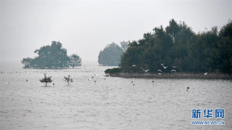 治理后的深圳河,水鸟成群飞过(2019年12月22日摄)。 新华社记者 梁旭 摄