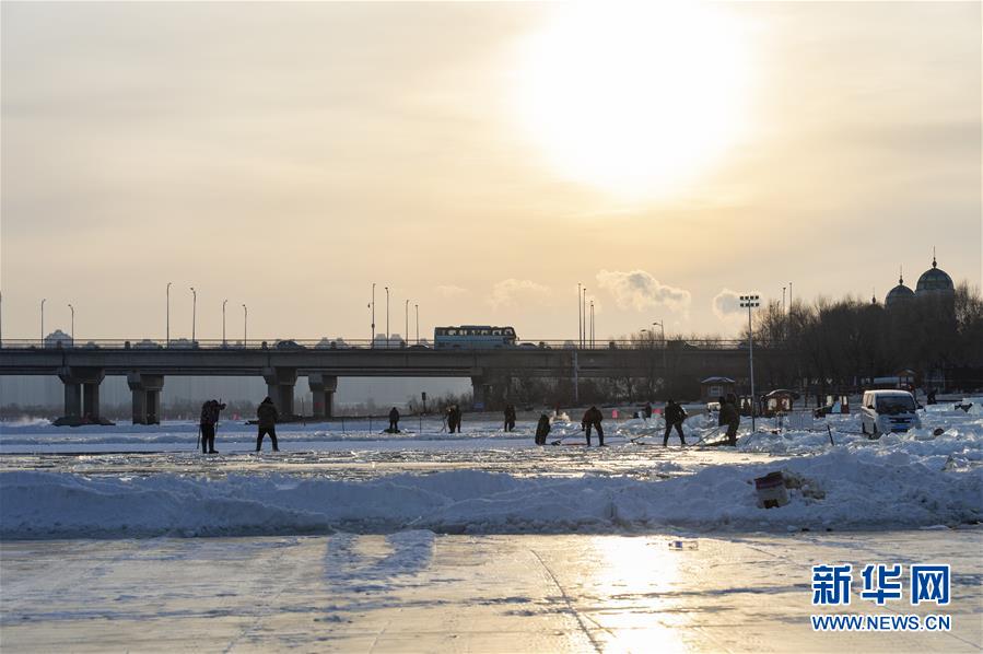 在松花江哈尔滨段,工人进行采冰作业(2019年12月11日摄)。 每到冬季,天气寒冷的冰城哈尔滨陆续迎来各类冰雕雪雕赛事。从2019年12月7日起,采冰工人们日夜采冰运冰、冰景雪雕艺术家精心雕琢,这些“冰雪造梦者”们在严寒天气中辛苦付出,让一座“冰雪之城”在松花江畔拔地而起,向来自世界各地的游客展现浪漫绚丽的冰雪奇观。 新华社发(谢剑飞摄)
