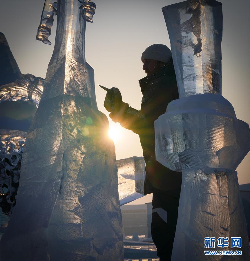 第九届中国·哈尔滨国际组合冰雕比赛选手在哈尔滨冰雪大世界内制作冰雕(1月2日摄)。 每到冬季,天气寒冷的冰城哈尔滨陆续迎来各类冰雕雪雕赛事。从2019年12月7日起,采冰工人们日夜采冰运冰、冰景雪雕艺术家精心雕琢,这些“冰雪造梦者”们在严寒天气中辛苦付出,让一座“冰雪之城”在松花江畔拔地而起,向来自世界各地的游客展现浪漫绚丽的冰雪奇观。 新华社记者 王松 摄