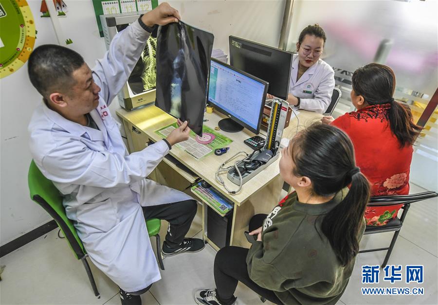 1月8日,在河北省廊坊市广阳区解放道办事处社区卫生服务中心,广阳区人民医院医生为患者诊断病情。 2019年以来,河北省廊坊市广阳区着力完善城市医联体制度,将优质的医疗资源逐步下沉到基层医疗卫生机构,患者可以享受到基层医疗机构与区域医疗中心之间双向转诊、检验检查结果互认、专家社区坐诊等便捷优质的诊疗服务。 新华社记者李晓果摄