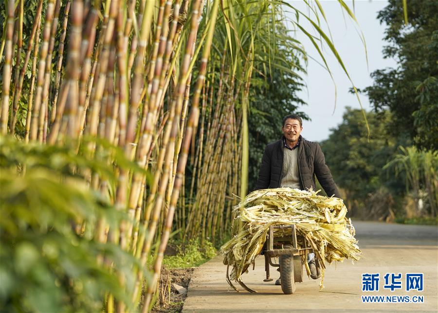 1月7日,在重庆江津石蟆中坝岛上,一名男子用独轮车运输甘蔗渣。 长江入渝第一岛的重庆江津石蟆中坝岛,寒冬时节仍然呈现一派原生态的田园风光。 新华社记者 刘潺 摄