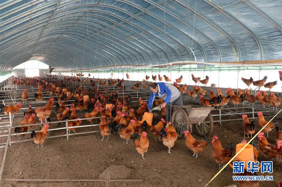 1月8日,在安徽省霍邱县彭塔乡,工人在养鸡场内添加用构树制作的鸡饲料。 近年来,安徽省霍邱县彭塔乡积极引导村民和村集体种植构树,将构树加工成的饲料用于畜禽养殖,逐步建立起育苗、种植、饲料加工、畜禽养殖产业链。 目前,彭塔乡构树种植面积达到3300亩,通过流转农户土地和吸纳村民就业的形式,带动700多户农民增收。 新华社发(黄博涵 摄)