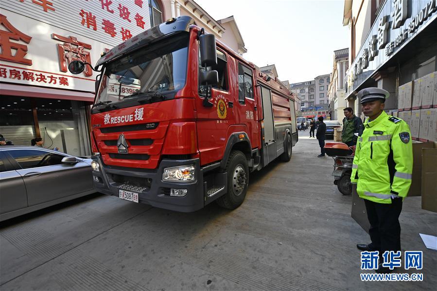 1月8日,银川市公安局交通警察支队民警在现场指挥清理堵塞消防通道车辆。 当日,银川市消防救援支队联合银川市公安局交通警察支队、银川市兴庆区综合执法局等单位在辖区商业区、住宅小区开展打通“生命通道”专项整治活动。通过消防车模拟进入“火场”的形式,现场整治车辆、杂物堵塞消防通道的违法行为,倡导市民杜绝乱停乱放,保障消防通道畅通。 新华社记者王鹏摄