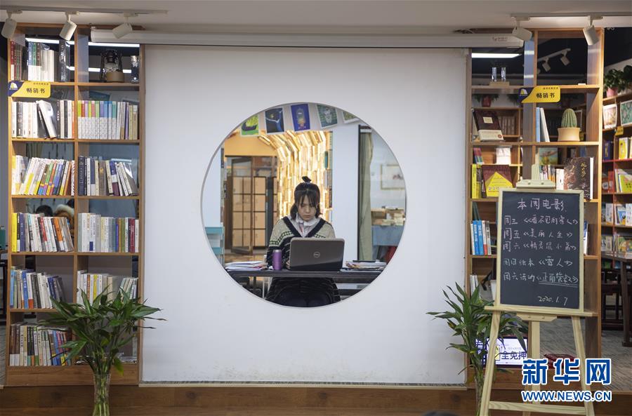1月8日,居民在太原市杏花岭区胜利东街富力城小区的社区图书馆里看书。 近年来,山西省太原市积极推进社区图书室升级改造,改造后的一些社区图书室因丰富藏书和独特设计成为居民阅读休闲的好去处。 新华社记者 杨晨光 摄
