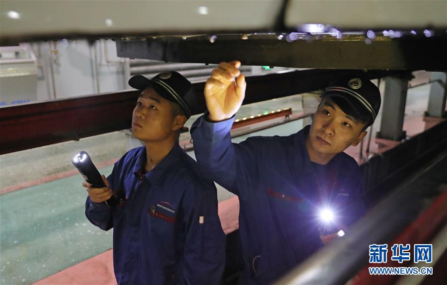 1月8日,在沈阳动车段沈阳北动车运用所,沈阳动车段机械师对高铁列车进行检修。 2020年春运临近,中国铁路沈阳局集团有限公司沈阳动车段沈阳北动车运用所加强对动车组列车的检修整备工作,为即将到来的春运做好准备。 新华社记者 杨青 摄