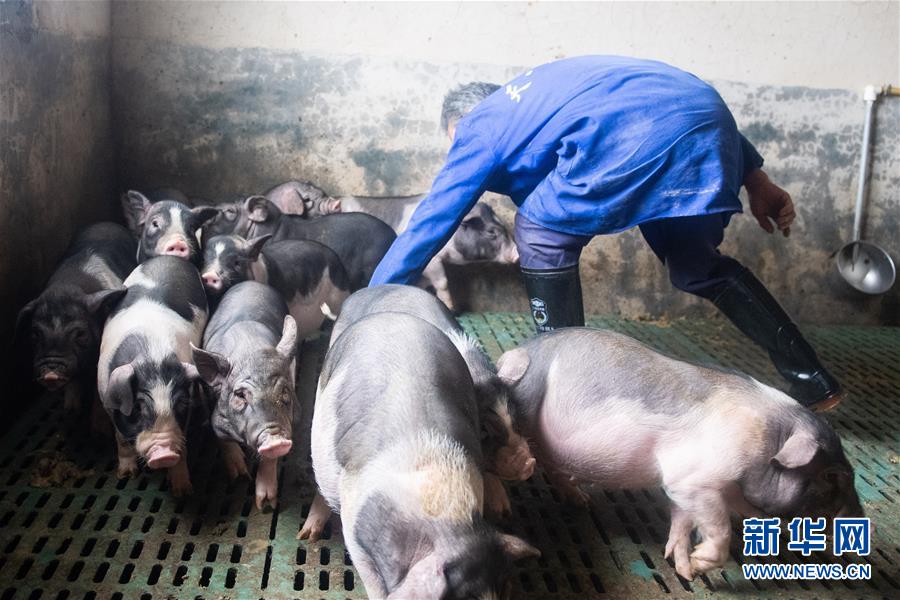 1月8日,在老粮仓镇一家畜牧科技有限公司,工作人员挑选花猪仔。 当日,在湖南省宁乡市老粮仓镇,当地扶贫部门组织生猪养殖企业为有生猪养殖意愿和能力的贫困户免费发放猪仔,让贫困户通过养殖实现增收。猪仔发放将持续到3月底。 新华社发(陈思汗摄)