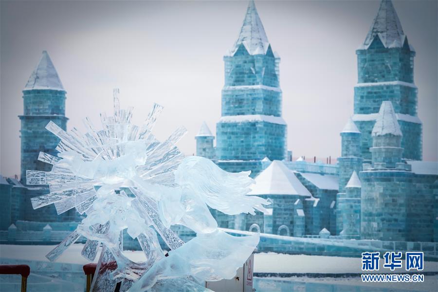 在哈尔滨冰雪大世界内拍摄的冰雕作品(1月8日摄)。 近日,在哈尔滨冰雪大世界园区内举行的各项冰雕赛事中,经过来自世界各地的冰雕选手悉心雕琢,一块块冰变身为精美的艺术作品,数十座冰雕仿佛晶莹剔透的出“冰”芙蓉。 新华社记者 王松 摄