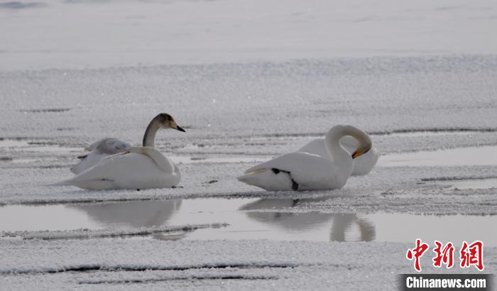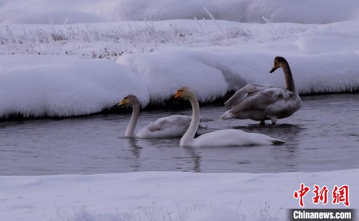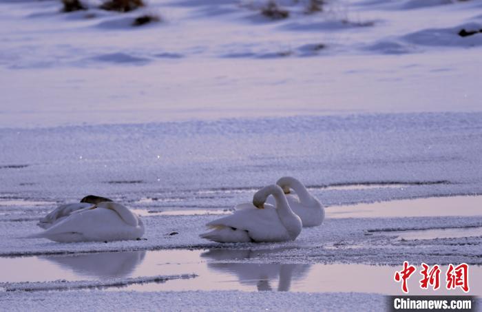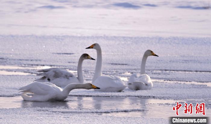新疆巴音布鲁克高原不畏严寒的天鹅。 肖永浩 摄