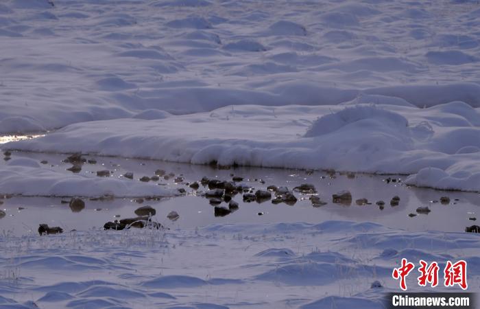 进入小寒节气,海拔2000多米的巴音布鲁克草原,到处白雪皑皑,气温骤降。流淌的河水没有结冰,留守在巴音布鲁克草原过冬天鹅与白雪厚厚的河床相映成趣,犹如童话一般。