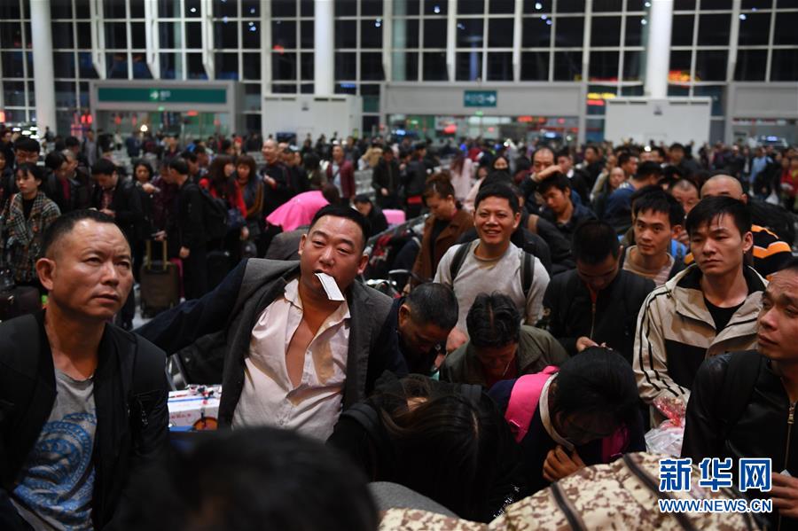 1月10日,在深圳东站,乘坐K4526次列车的乘客等待检票。 当日,2020年春运正式启动。 新华社记者 毛思倩 摄