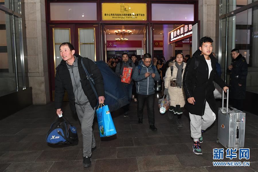 1月10日,在北京火车站,乘坐K4051次列车的乘客准备上车。 当日,2020年春运正式启动。 新华社记者 鞠焕宗 摄