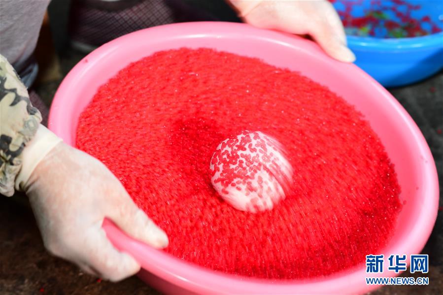 1月9日,在玉屏侗族自治县田坪镇白果村,村民在制作红粑。 红粑是贵州省铜仁市玉屏侗族自治县群众常做的过年食品。红粑以糯米和粘米为主,经过碎米、打芡、揉捻、蒸熟、压型等工序制作而成。圆圆的红粑,象征着团圆、美满。 新华社记者 杨楹 摄