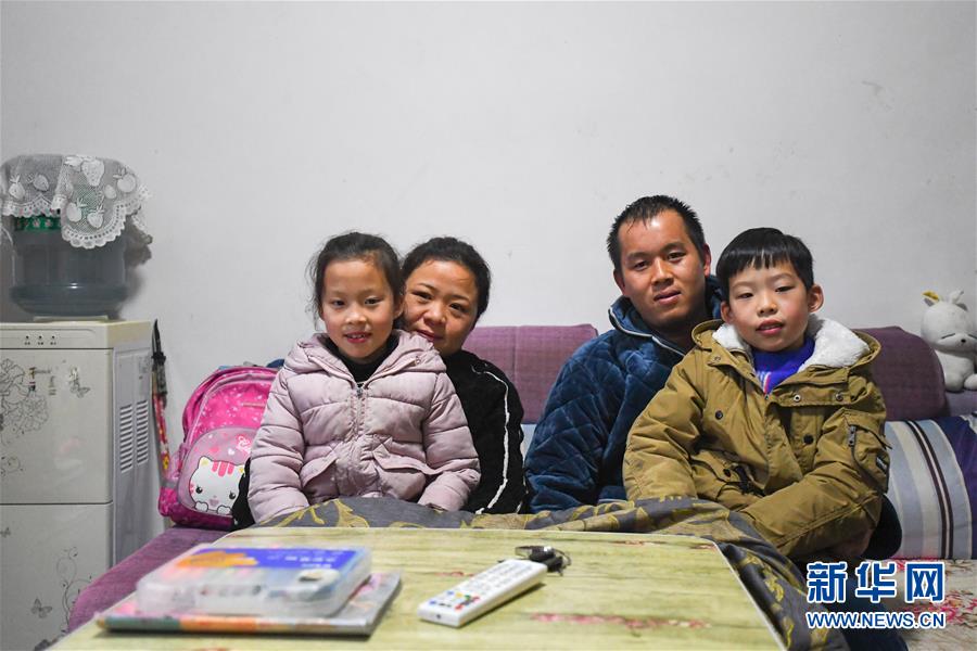 向梅(左二)和丈夫杨勇(右二)、女儿杨雯萱(左一)、儿子杨鸿(右一)在坪朗安置点的家中留影(1月8日摄)。新华社记者 陈泽国 摄