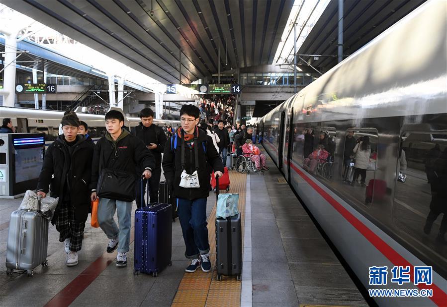 1月10日,在北京西站,乘客走在站台上。 当日,2020年春运拉开帷幕,在40天时间里,中国预计有30亿人次出行。 新华社发(任超摄)