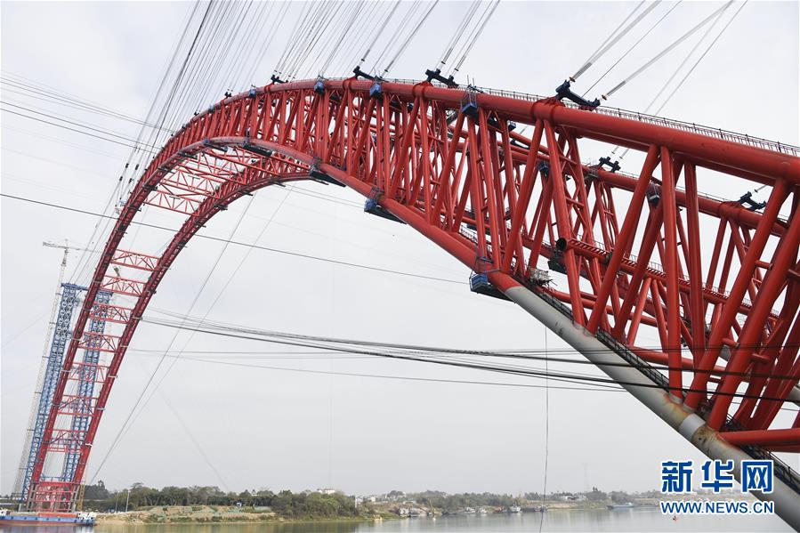 这是主拱肋合龙的平南三桥(1月10日摄)。 新华社记者 曹祎铭 摄