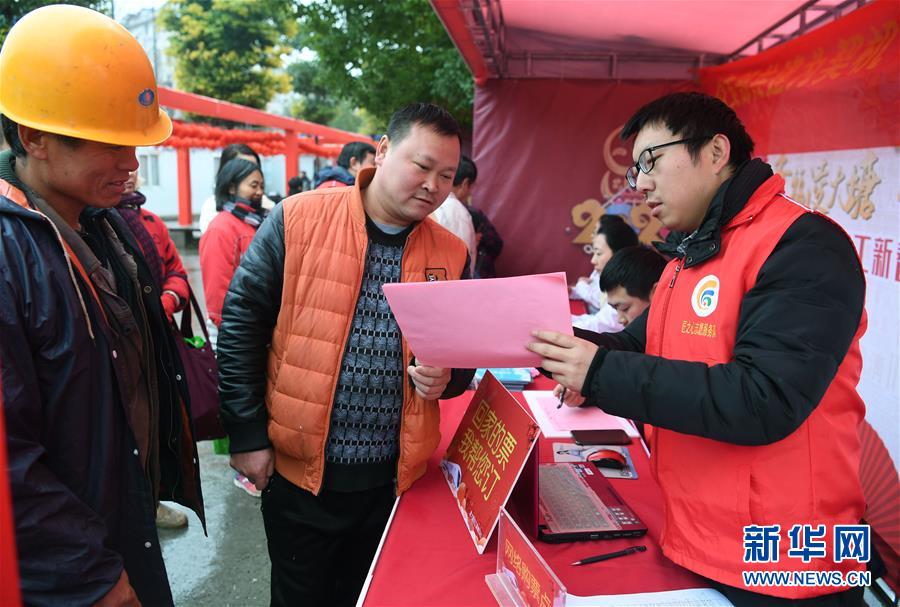 1月10日,安徽合肥市常青街道凌大塘社区志愿者为外来务工人员登记乘坐免费大巴返乡信息。 当日是2020年春运第一天,各地开展咨询、引导、重点旅客帮扶等春运服务工作,为旅客营造温馨、便捷的出行环境。 新华社记者 刘军喜 摄