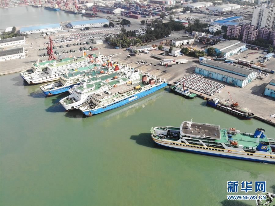 1月10日,停泊在海南省海口市秀英港的船舶(无人机照片)。 当日,2020年春运大幕开启,海南省海口市秀英港迎来春运客流。船员们认真排查隐患,做好春运船舶检修维护工作,确保春运安全运行。 新华社发(张丽芸摄)