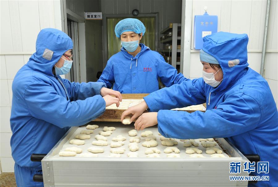 河北省黄骅市一家面花制作工厂的工人在摆放面花(1月10日摄)。河北省黄骅市有着过年蒸面花的习俗,随着春节临近,黄骅市的面花制作工厂加班加点制作面花,供应春节市场。黄骅面花是一种用模子塑形加工后蒸制的面食,历史悠久,造型美观。2009年,黄骅面花制作技艺被列入河北省非物质文化遗产名录。新华社记者 牟宇 摄