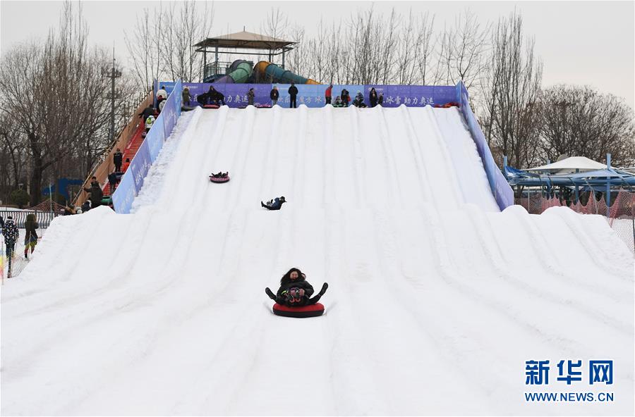 1月11日,游人在嘉年华活动中体验“雪上飞碟”。 1月3日至2月16日,第五届欢乐水魔方冰雪嘉年华在北京欢乐水魔方嬉水乐园举办。游客可在2万多平方米的园区内,体验超级滑道、城堡式冰滑梯、雪上飞碟、雪上坦克等20余种冰雪游乐项目。 新华社发(任超 摄)