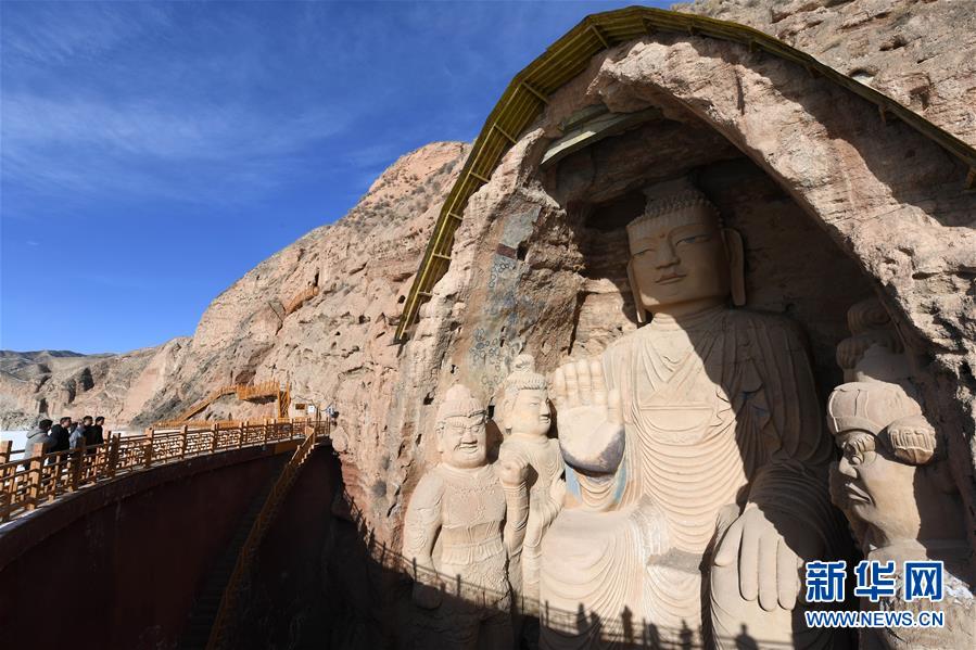 1月11日,游客在参观天梯山石窟13号窟。新华社记者 马宁 摄
