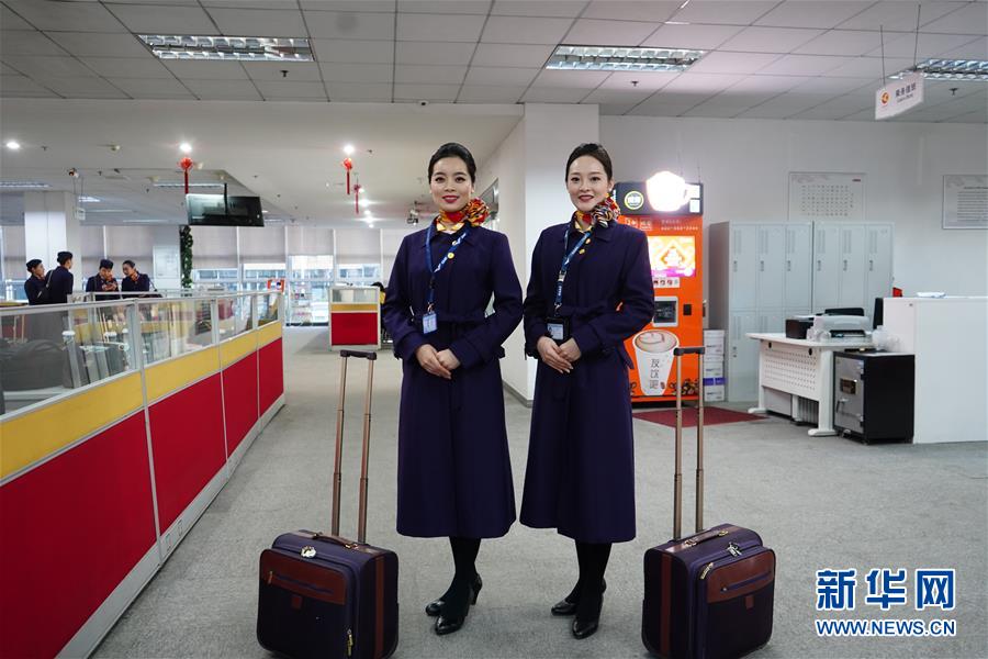 1月10日,天津航空乘务员付红宇(左)和同事陶鑫鑫准备前往机场。新华社记者 王晖 摄