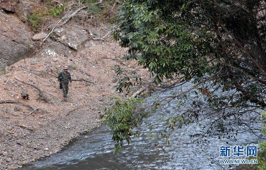 在江西九连山国家级自然保护区,陈志高带着他的相机准备过一条小河进入密林深处拍摄鸟类(1月8日摄)。新华社记者 彭昭之 摄