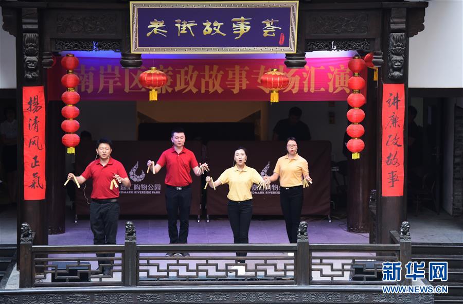 宣讲人员在重庆市南岸区举办的廉政故事专场汇演活动上表演快板《反腐倡廉颂清风》(2019年4月27日摄)。 新华社记者 王全超 摄