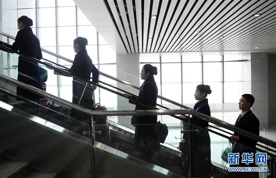 1月12日,乘务组成员在合肥南站列队准备出发。新华社记者 韩晓雨 摄