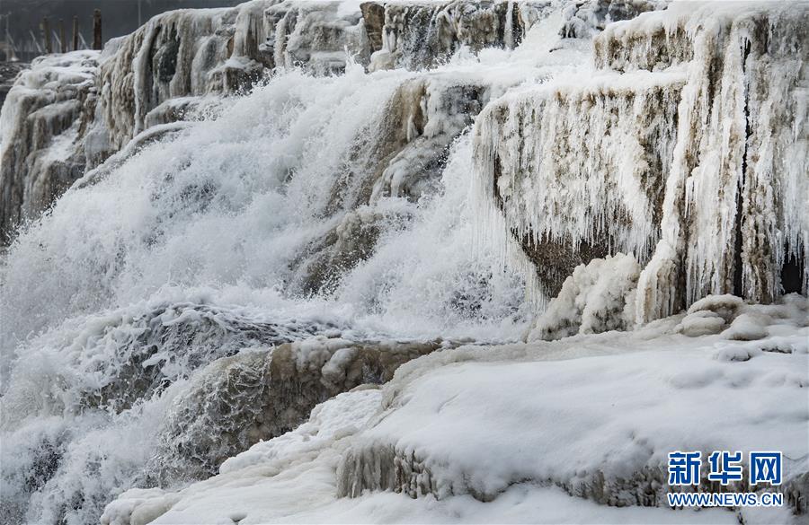 1月12日,陕西黄河壶口瀑布景区内的冰瀑与流动的瀑布形成一幅壮丽的图画。 隆冬时节,位于晋陕交界的黄河壶口瀑布飞溅的浪花在瀑布两岸岩石上凝结形成冰瀑冰雕,成为冬季壶口瀑布景区一道奇特的景观,吸引游人前往观赏。 新华社记者 陶明 摄