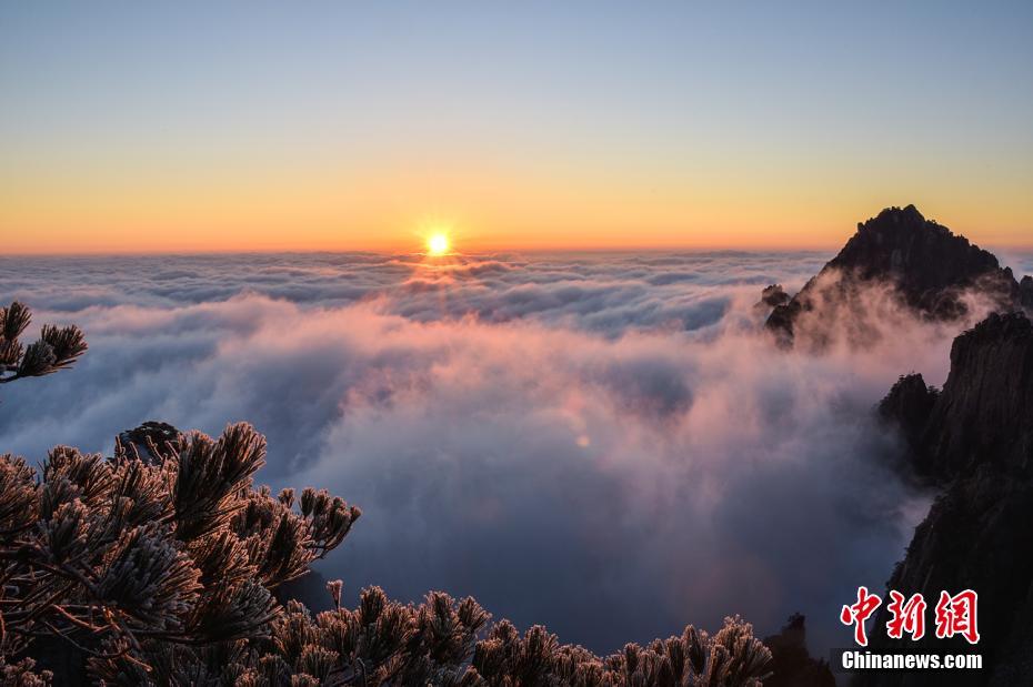 黄山云海雾凇相互映衬宛如仙境