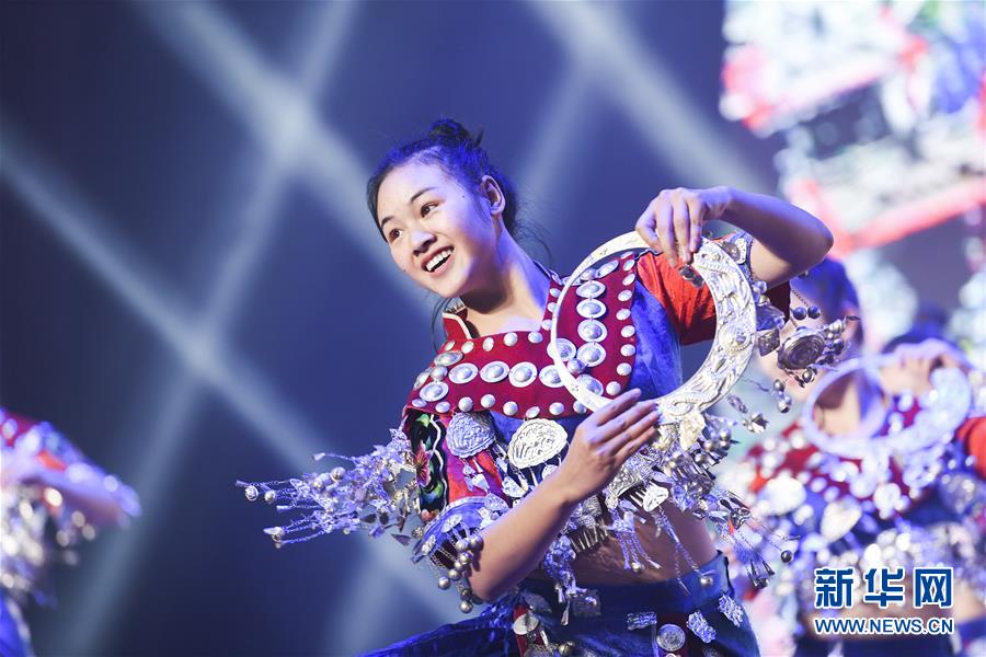 1月12日,演员在慰问演出上表演苗族舞蹈。