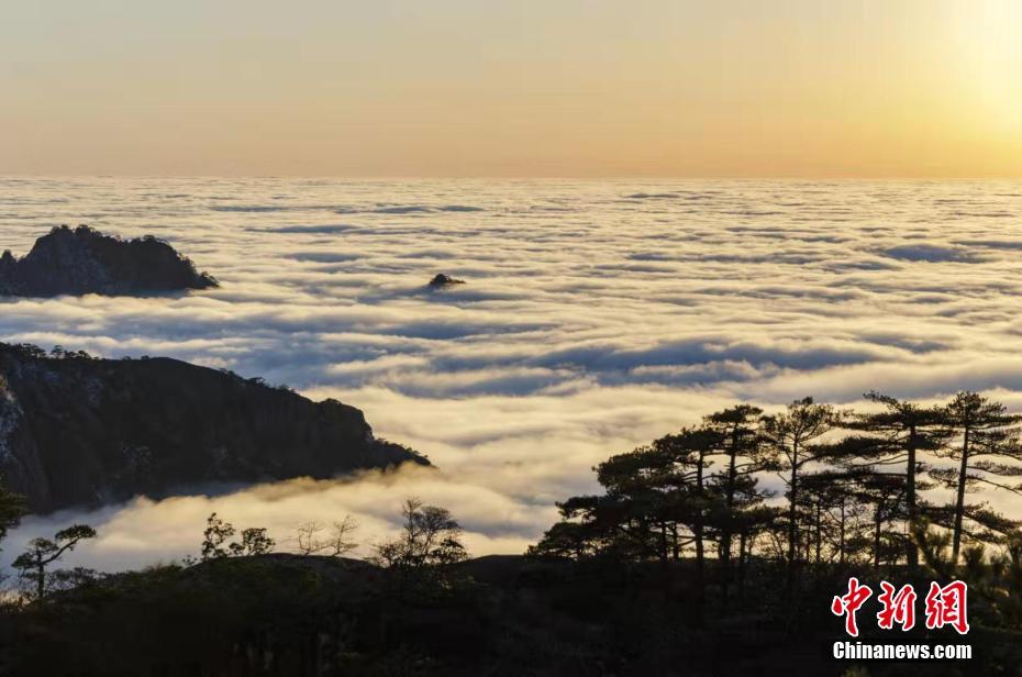 1月12日下午,百里黄山,千峰万树飘浮在烟波浩渺的云海之中,东海、西海、南海、北海、天海“五海”相连,让到访冬游的中外游客和摄影爱好者流连忘返。方立华 摄