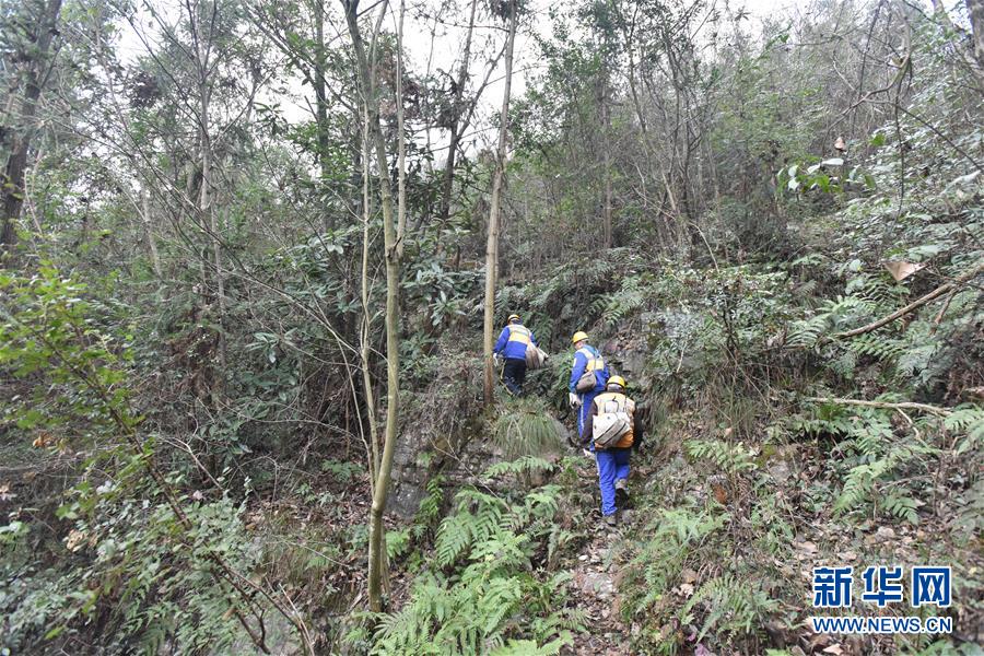 1月13日,宜昌综合维修段的巡山工行走在山间。 春运期间,宜万铁路运输繁忙,中国铁路武汉局集团有限公司宜昌综合维修段的巡山工每天要攀爬于宜万铁路沿线的崇山峻岭之间,巡查、排除危石、危树等安全隐患,为春运保驾护航。 新华社发(彭琦 摄)