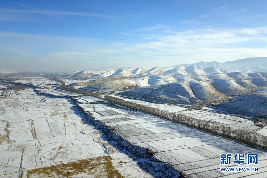 这是1月13日在甘肃省武威市天祝藏族自治县境内拍摄的祁连山下冬日景色(无人机照片)。新华社记者 范培珅 摄