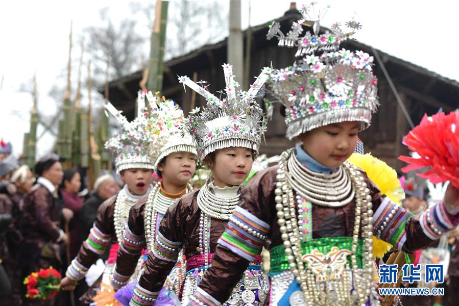 1月13日,村民在贵州省从江县丙妹镇大塘村表演芦笙舞。新华社发(吴德军 摄)