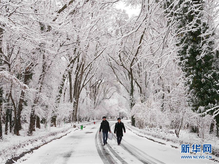 1月13日,在乌兹别克斯坦首都塔什干,人们在公园欣赏雪景。新华社发(扎法尔摄)