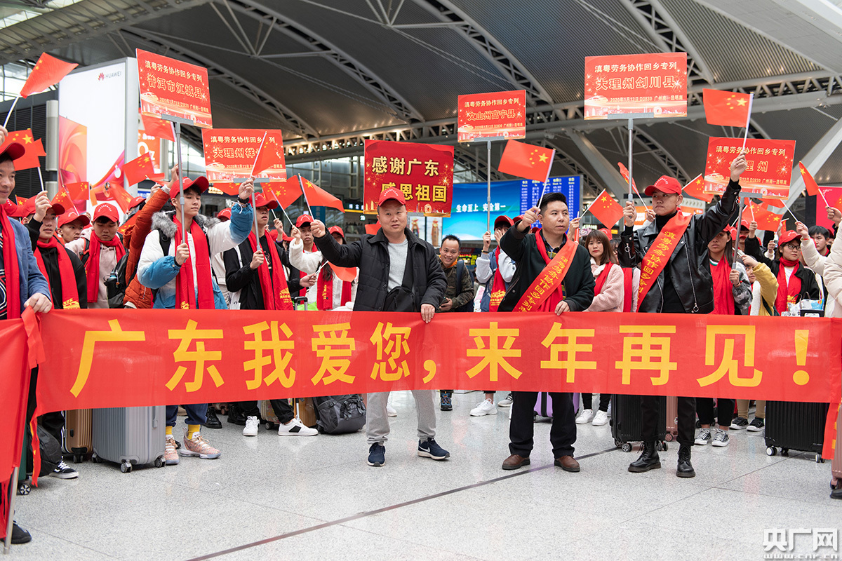 广东人社扶贫专列出发。(央广网记者 官文清 摄)