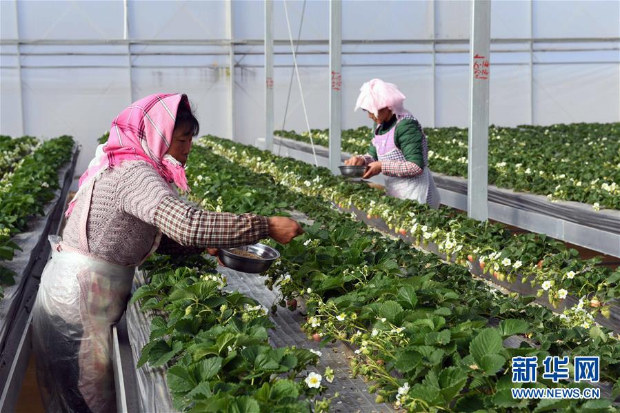 1月13日,法祖屋村村民在草莓育苗基地工作。新华社记者杨宗友 摄